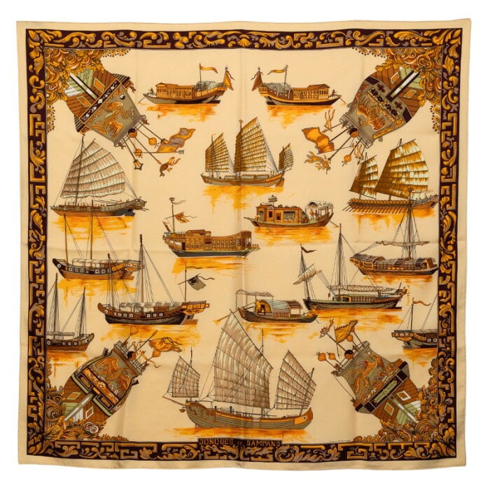 エルメス カレ90 JUNQUES ET SAMPANS スカーフ ベージュ マルチカラー シルク レディース HERMES 【中古】