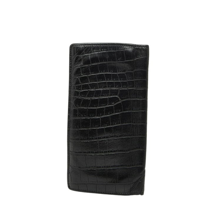 サンローラン タイニー YSLロゴ クロコ型押し 長財布 コンチネンタルウォレット 607746 ブラック レザー レディース SAINT LAURENT 【中古】