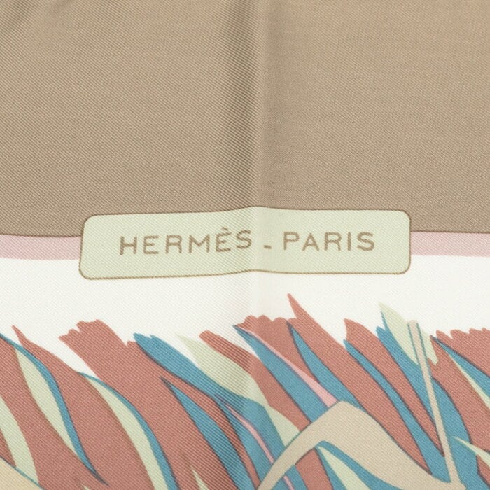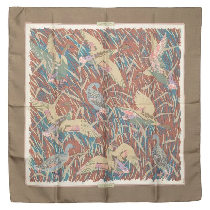 エルメス カレ90 COLS VERTS マガモ 鴨 鳥 スカーフ グレー マルチカラー シルク レディース HERMES 【中古】