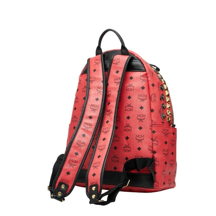 エム シー エム ヴィセトス ロゴグラム スタッズ リュック デイパック MMK4AVE51 レッド レザー レディース MCM 【中古】