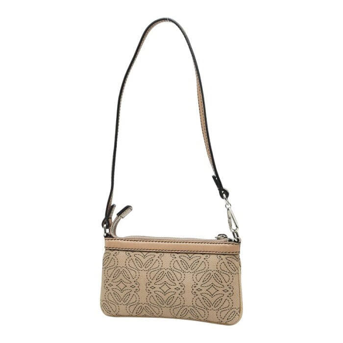 ロエベ アナグラムロゴ アクセサリーポーチ ハンドバッグ ベージュ PVC レザー レディース LOEWE 【中古】