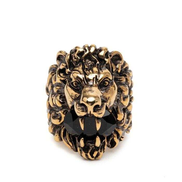 グッチ ライオンヘッド リング 指輪 #23 ゴールド ブラック メッキ クリスタル メンズ GUCCI 【中古】