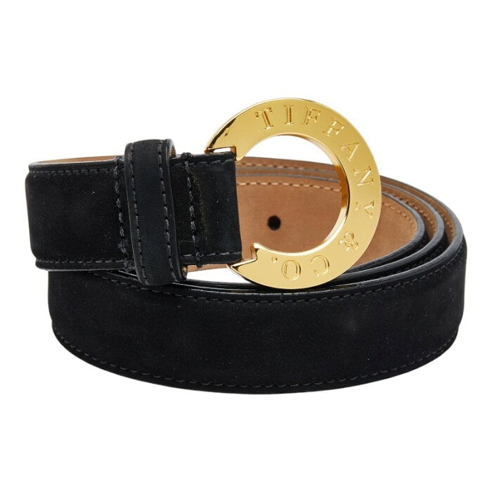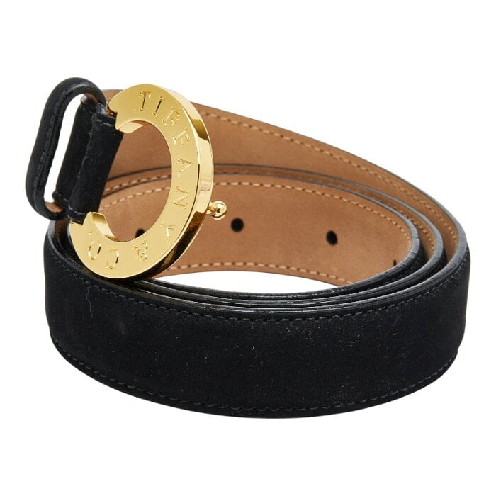 ティファニー ロゴバックル ベルト ブラック ゴールド スウェード メッキ レディース TIFFANY&Co. 【中古】