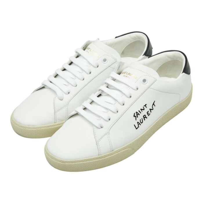 サンローラン ロゴ スニーカー サイズ:39 ホワイト ブラック レザー レディース SAINT LAURENT 【中古】