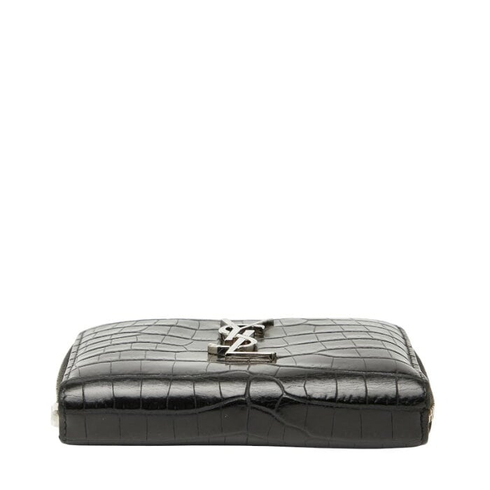 サンローラン YSLロゴ クロコ型押し ラウンドファスナー 二つ折り財布 403964 ブラック レザー レディース SAINT LAURENT 【中古】