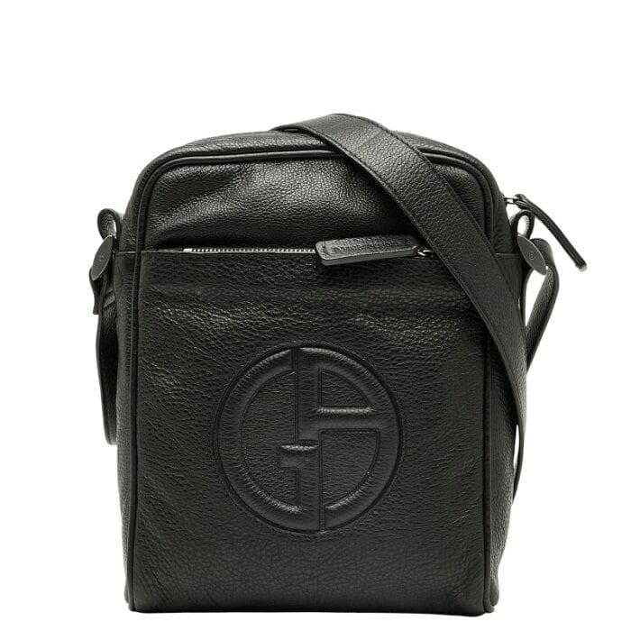 アルマーニ ロゴ ポシェット ショルダーバッグ ブラック レザー レディース ARMANI 【中古】