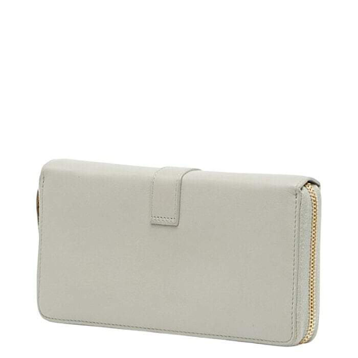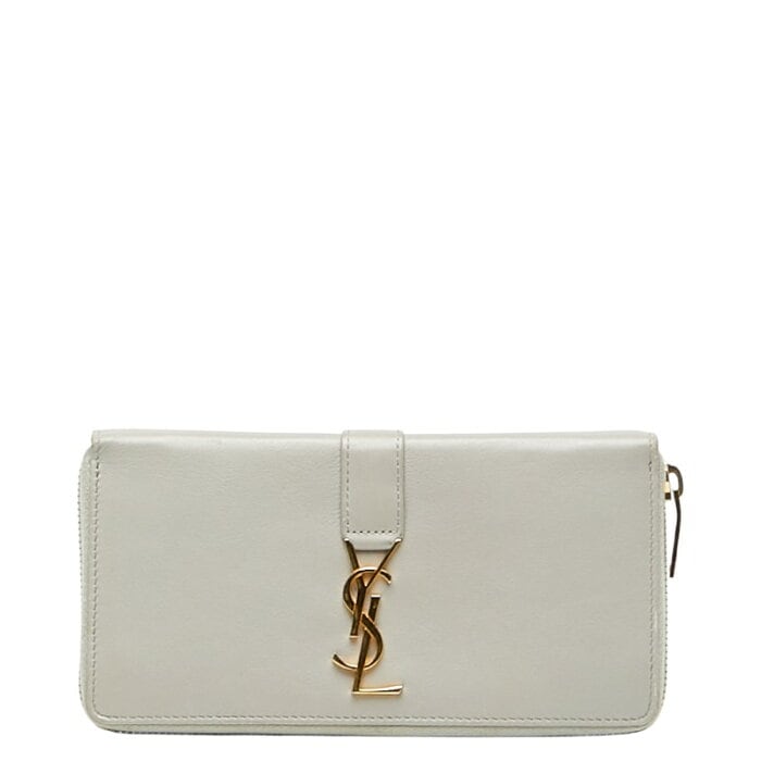 サンローラン YSLロゴ ラウンドファスナー 長財布 414570 ベージュ レザー レディース SAINT LAURENT 【中古】