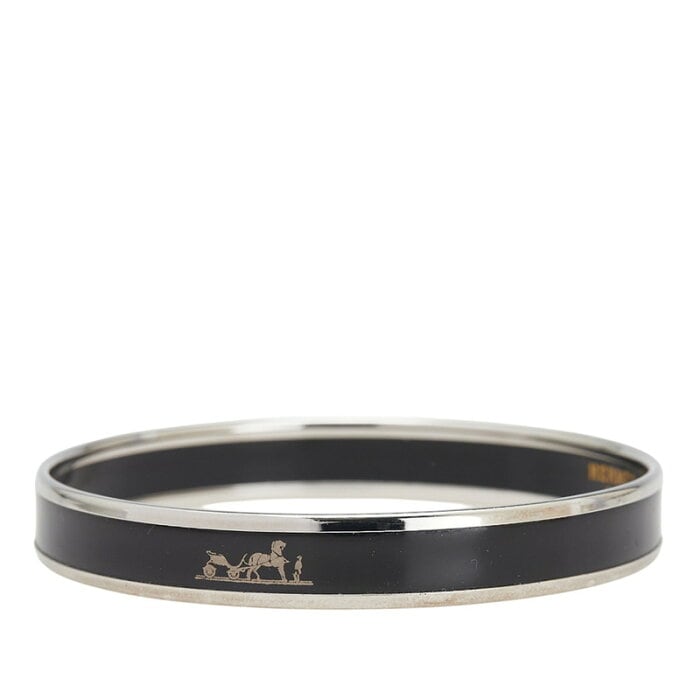 エルメス エマイユPM 馬車 ロゴ バングル シルバー ブラック メタル レディース HERMES 【中古】