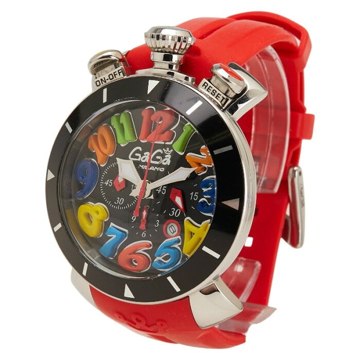 ガガ ミラノ マヌアーレ 腕時計 クオーツ ブラック文字盤 ステンレススチール ラバー メンズ Gaga Milano 【中古】