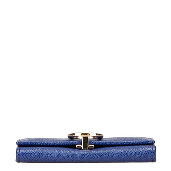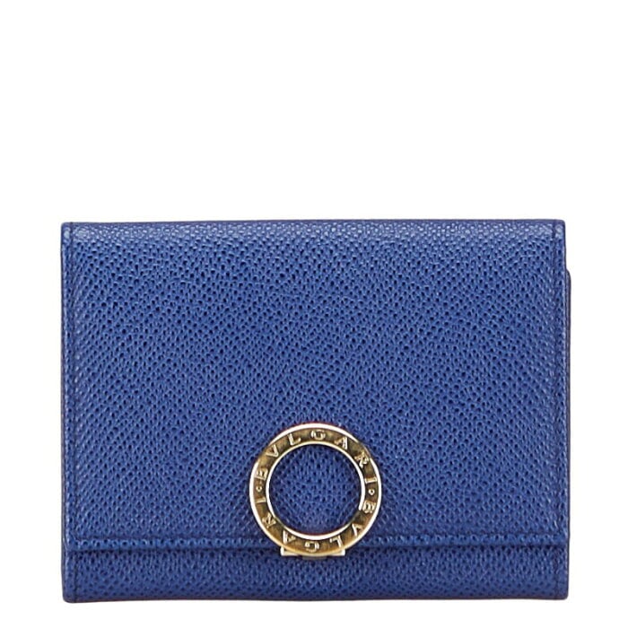ブルガリ ロゴクリップ カードケース 名刺入れ ブルー ゴールド レザー レディース BVLGARI 【中古】