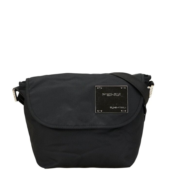 フェンディ ロゴプレート ショルダーバッグ ブラック シルバー ナイロン レディース FENDI 【中古】