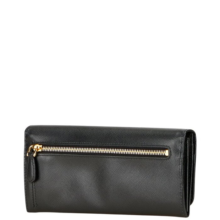 プラダ 三角ロゴプレート 長財布 ブラック レザー レディース PRADA 【中古】