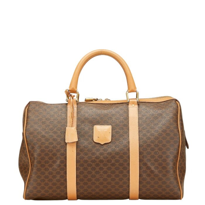 セリーヌ マカダム ボストンバッグ ブラウン PVC レザー レディース CELINE 【中古】