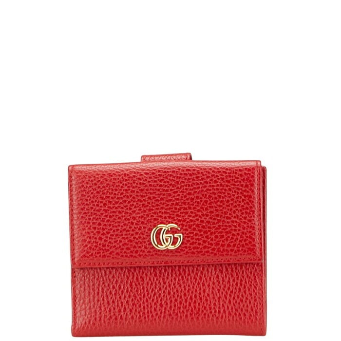 グッチ GGマーモント 二つ折り財布 456122 レッド レザー レディース GUCCI 【中古】