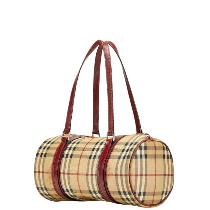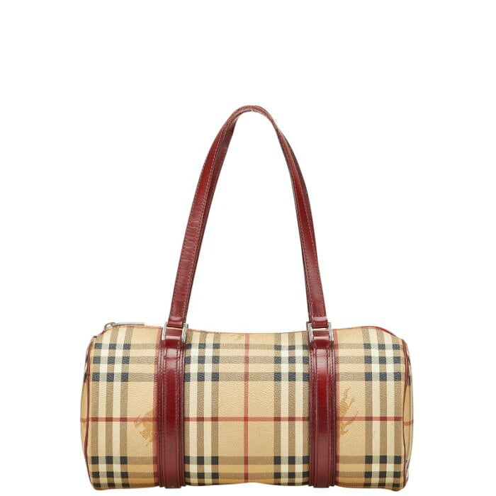 バーバリー ノバチェック シャドーホース ミニボストンバッグ ベージュ レッド PVC レザー レディース BURBERRY 【中古】
