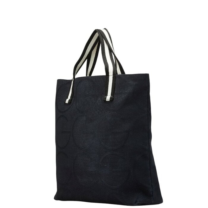 グッチ Gロゴ トートバッグ 123439 ブラック ホワイト キャンバス レディース GUCCI 【中古】