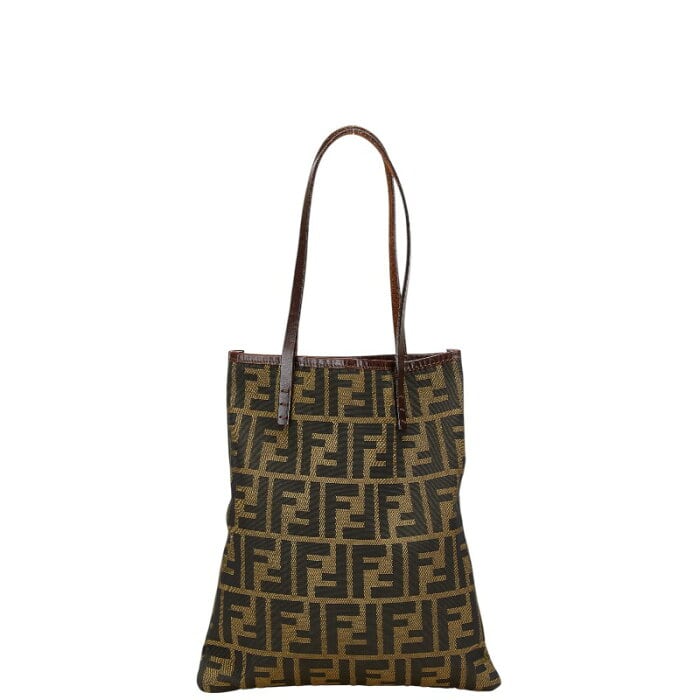 フェンディ ズッカ トートバッグ ハンドバッグ カーキ ブラウン キャンバス レザー レディース FENDI 【中古】