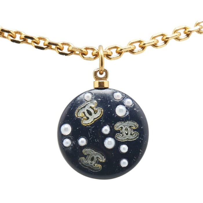 シャネル ココマーク ネックレス ゴールド ブラック メッキ フェイクパール レディース CHANEL 【中古】