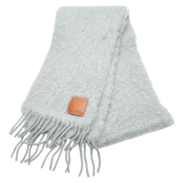 ロエベ アナグラムロゴ マフラー グレー ウール モヘヤ レディース LOEWE 【中古】