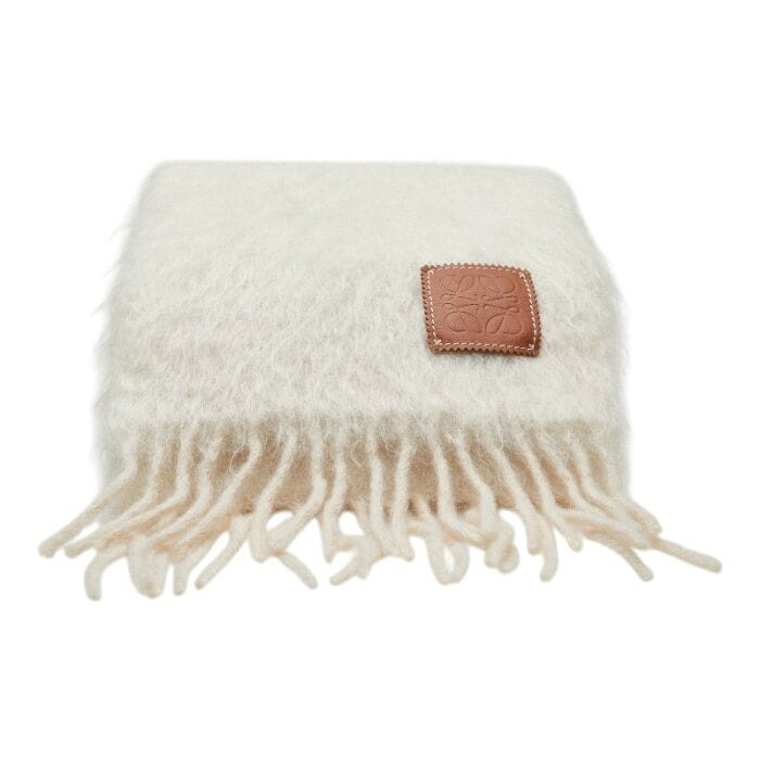ロエベ アナグラム マフラー ホワイト ウール レザー モヘア レディース LOEWE 【中古】