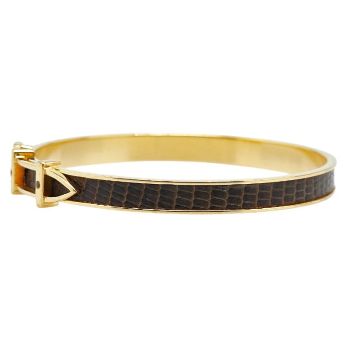 エルメス ベルト モチーフ リザード 型押し バングル ゴールド ブラウン メッキ レザー レディース HERMES 【中古】