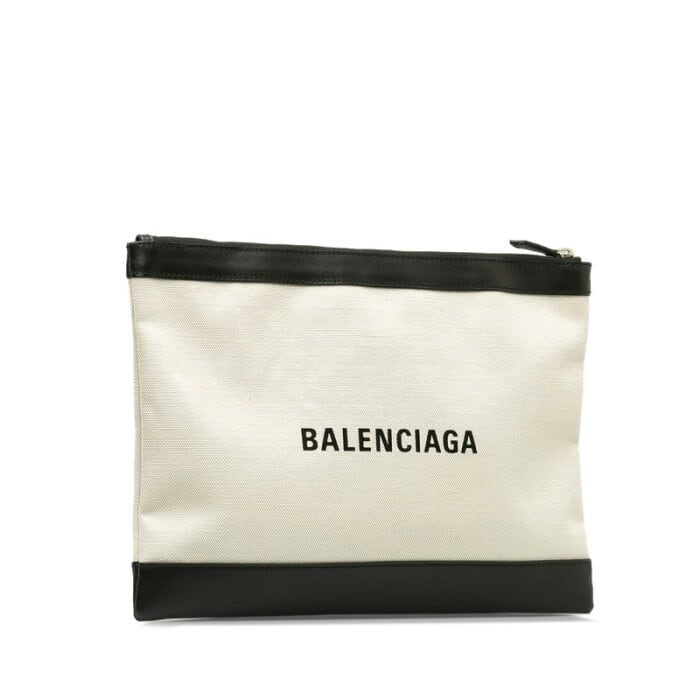 バレンシアガ クラッチバッグ 373840 ベージュ ブラック キャンバス レザー レディース BALENCIAGA 【中古】