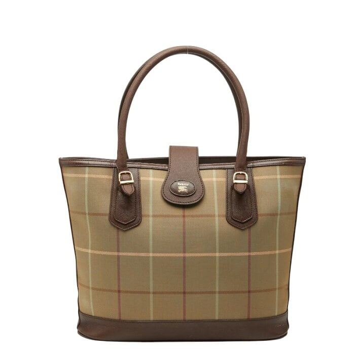 バーバリー チェック トートバッグ ブラウン マルチカラー キャンバス レザー レディース BURBERRY 【中古】