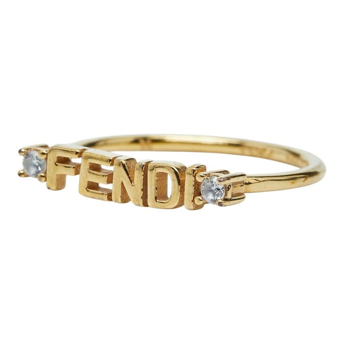 フェンディ ロゴ リング 指輪 #M ゴールド メッキ クリスタル レディース FENDI 【中古】