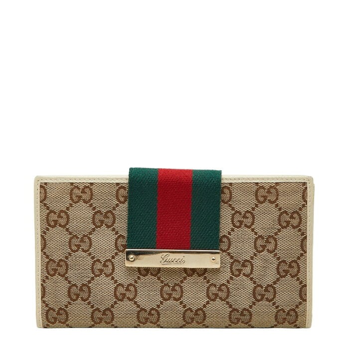 グッチ GGキャンバス シェリーライン 長財布 181672 ベージュ アイボリー キャンバス レザー レディース GUCCI 【中古】
