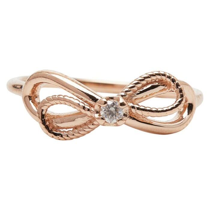 アガット K10PG ピンクゴールド ダイヤ0.03ct リボン モチーフ リング 指輪 レディース agete 4.5号 【中古】