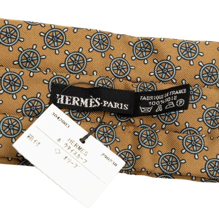 エルメス アスコットタイ 舵 モチーフ ネクタイ カーキ ブルー シルク メンズ HERMES 【中古】