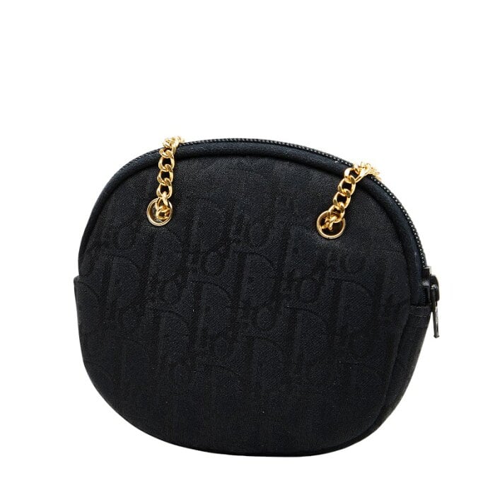 ディオール トロッター ロゴ チェーン ショルダーバッグ コインケース 小銭入れ ブラック キャンバス レディース Dior 【中古】