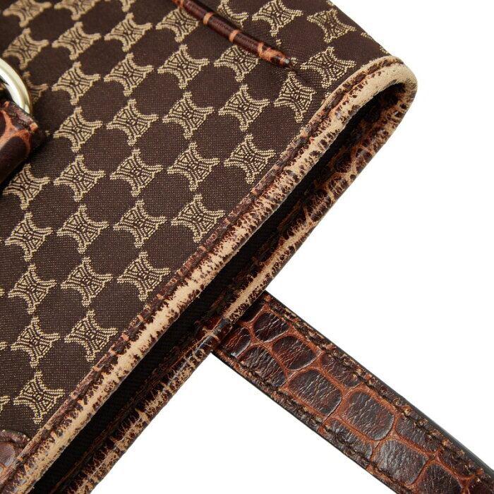 セリーヌ マカダム ハンドバッグ トートバッグ ブラウン キャンバス レザー レディース CELINE 【中古】