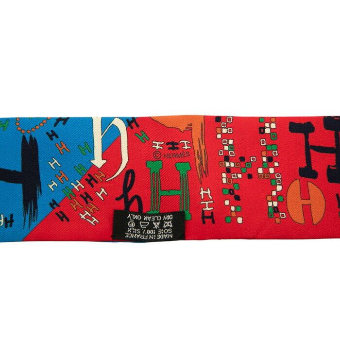 エルメス ツイリー 1001H 千と一のH スカーフ レッド ブルー マルチカラー シルク レディース HERMES 【中古】