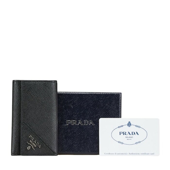 プラダ ロゴ サフィアーノ キーケース ブラック レザー レディース PRADA 【中古】