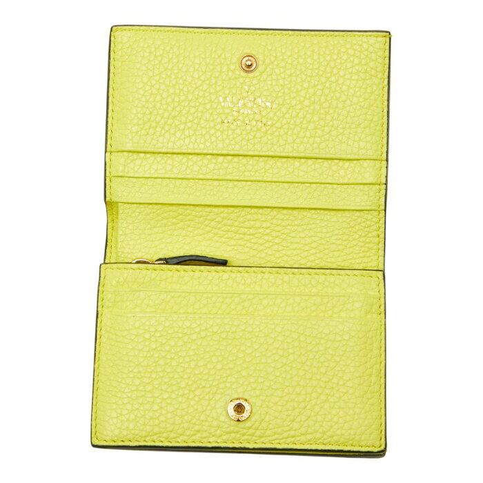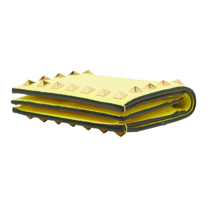 ヴァレンティノ ロックスタッズ 二つ折り財布 イエロー レザー レディース VALENTINO 【中古】