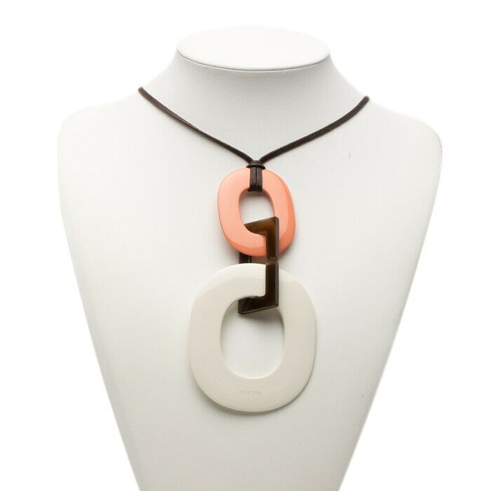 エルメス カラ ネックレス ホワイト マルチカラー バッファローホーン ファブリック レディース HERMES 【中古】