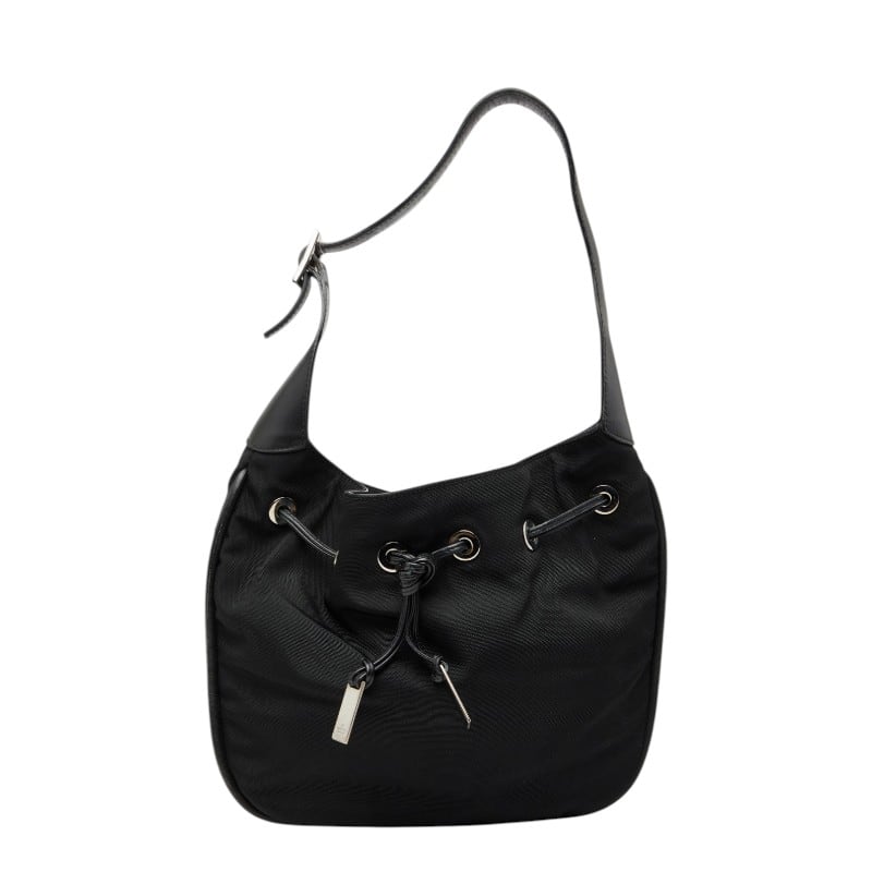 グッチ ワンショルダー ショルダーバッグ 巾着型 ブラック ナイロン レザー レディース GUCCI 【中古】