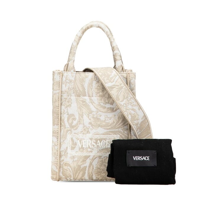 ヴェルサーチェ バロッコ アテナ ミニ トートバッグ ショルダーバッグ 2WAY ベージュ キャンバス レディース VERSACE 【中古】