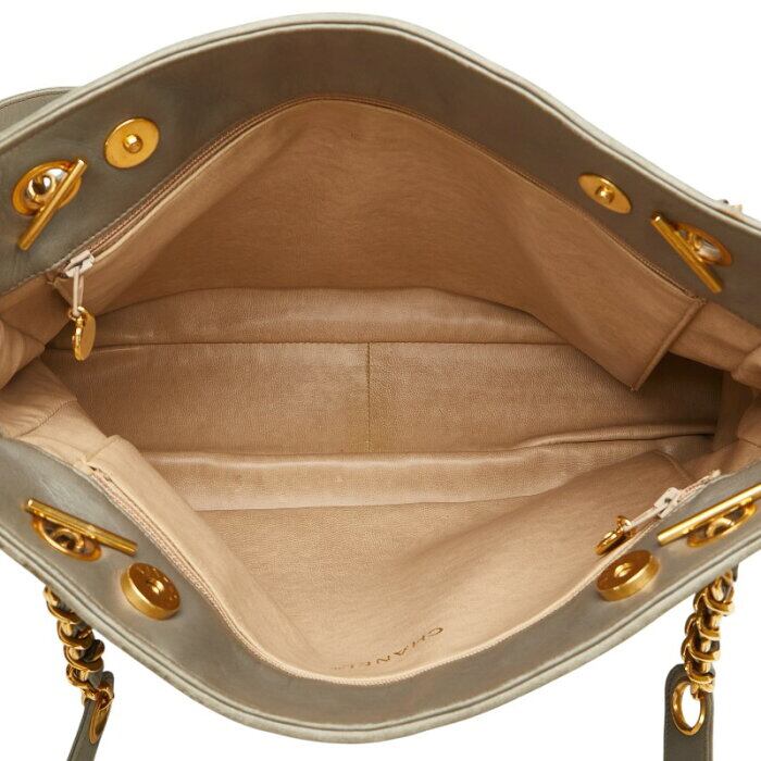 シャネル マトラッセ ココマーク チェーン トートバッグ グレー ライトグリーン キャンバス レザー レディース CHANEL 【中古】