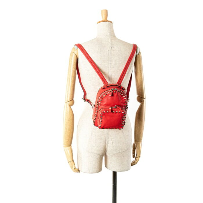 ヴァレンチノ ロックスタッズ リュック バックパック レッド レザー レディース Valentino 【中古】