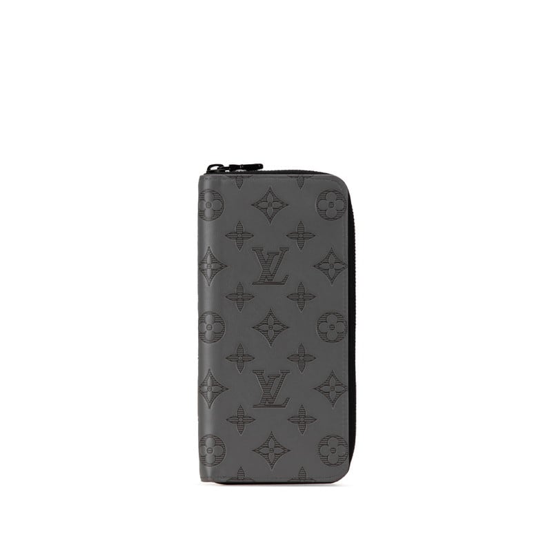 ルイ ヴィトン モノグラム シャドウ ジッピーウォレット ヴェルティカル 長財布 M81384 グレー レザー レディース LOUIS VUITTON 【中古】