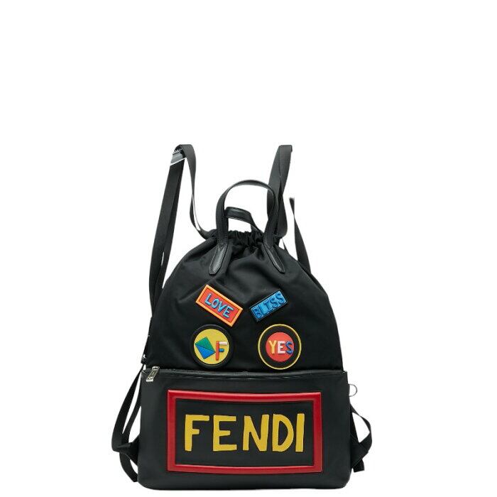 フェンディ ロゴ フェイス リュック バックパック ナップサック 7VZ034 ブラック マルチカラー ナイロン レザー レディース FENDI 【中古】