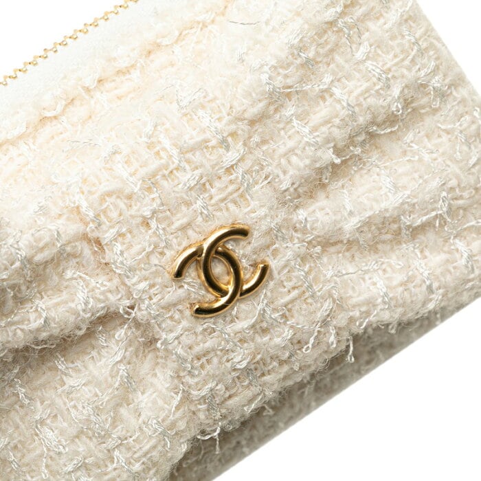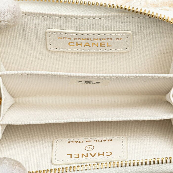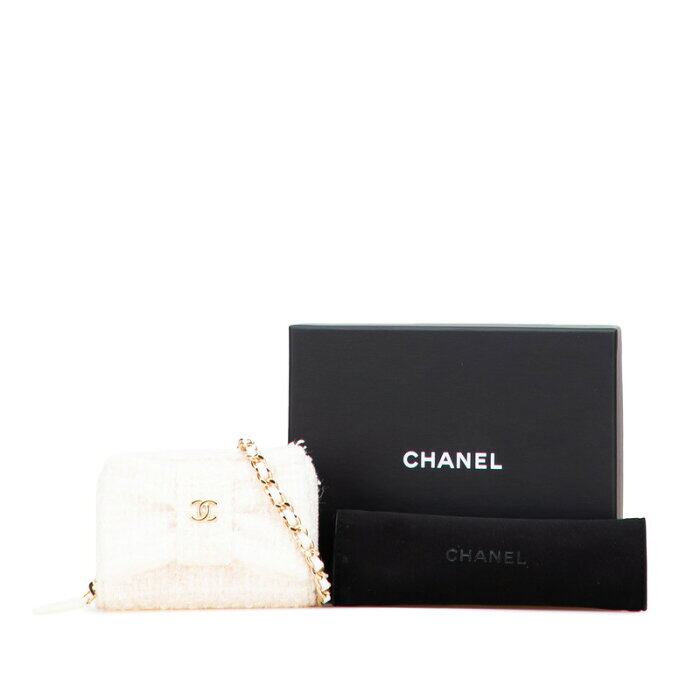 シャネル ココマーク リボン ミニ チェーンウォレット コインケース ホワイト ゴールド ツイード レザー レディース CHANEL 【中古】