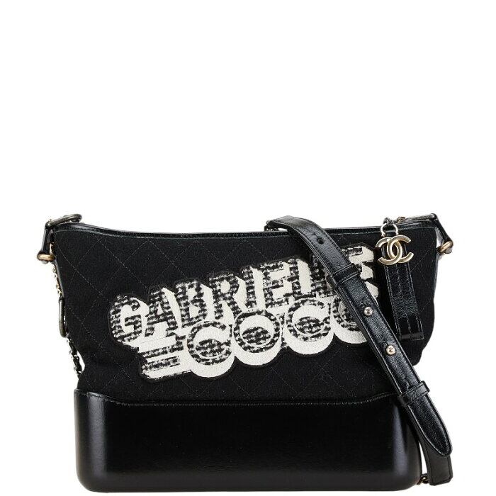 シャネル ガブリエル チェーン ショルダーバッグ ブラック フェルト レザー レディース CHANEL 【中古】