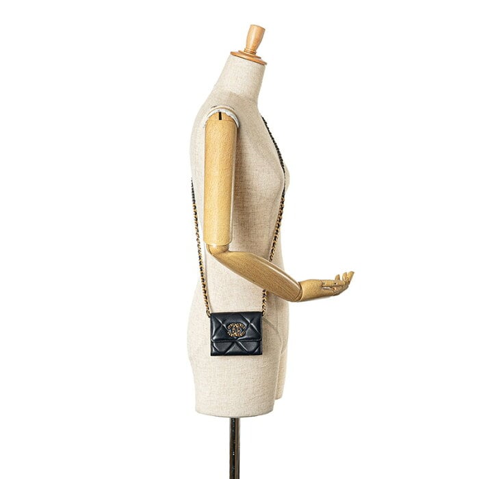 シャネル マトラッセ ココマーク 斜め掛け チェーンウォレット ネイビー ラムスキン レディース CHANEL 【中古】
