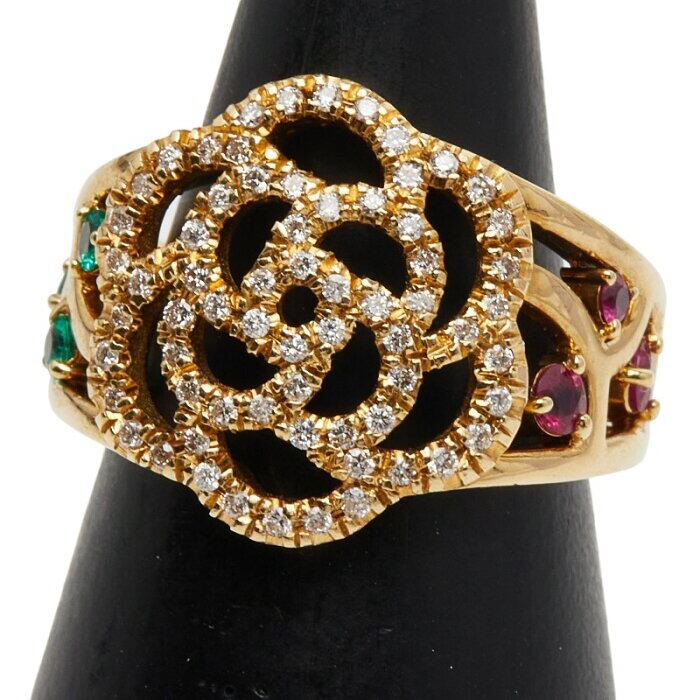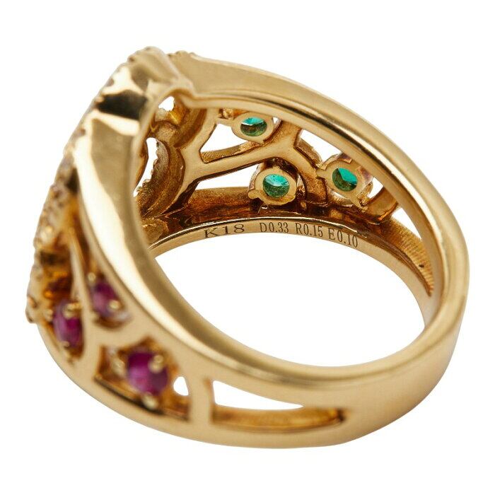 K18YG イエローゴールド ダイヤ0.33ct ルビー0.15ct エメラルド0.10ct リング 指輪 レディース 9.5号 【中古】