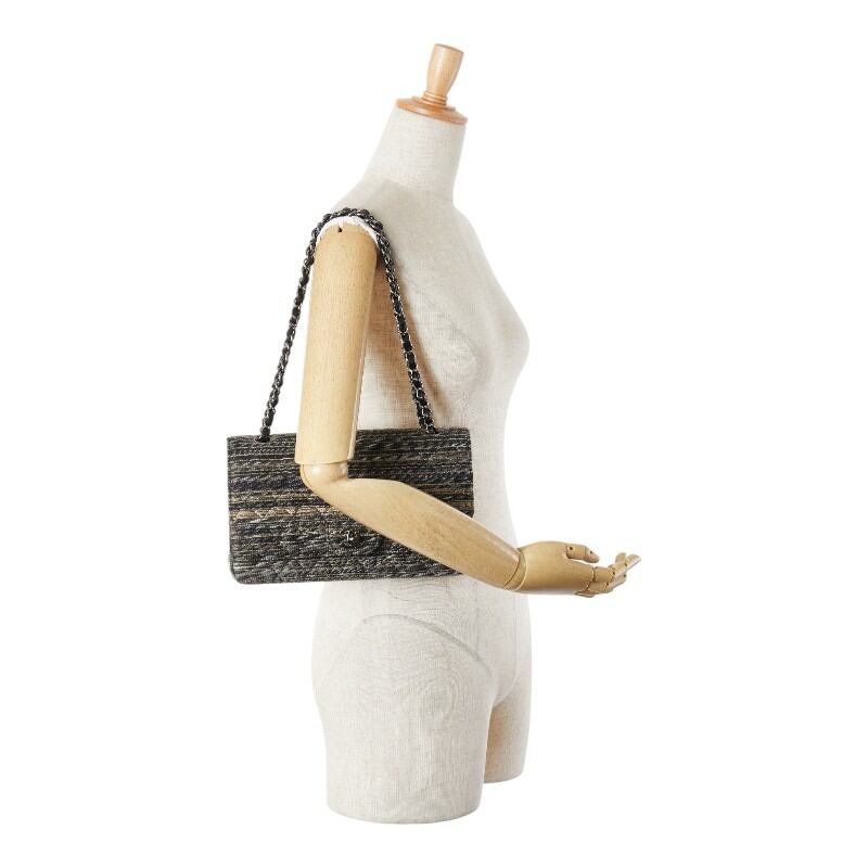 シャネル マトラッセ ココマーク ダブルフラップ チェーン ショルダーバッグ ハンドバッグ ブラック マルチカラー ツイード レザー レディース CHANEL 【中古】
