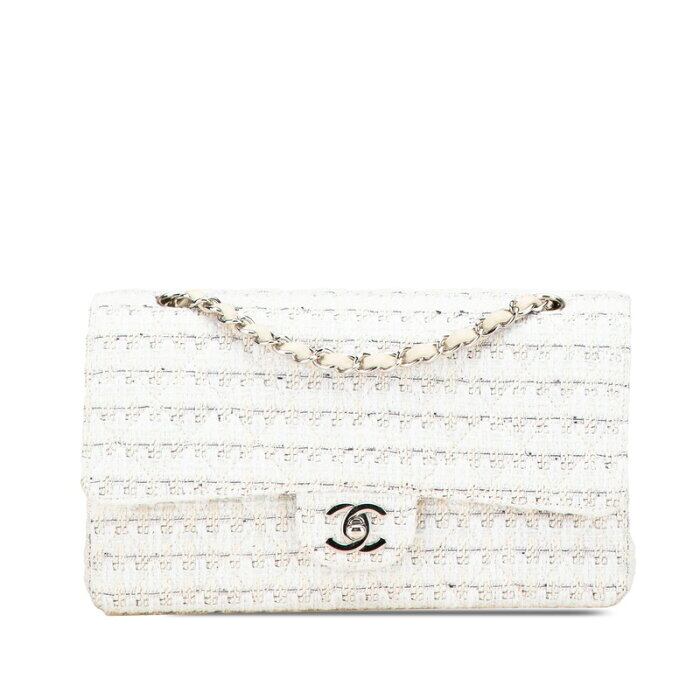 シャネル マトラッセ25 ココマーク Wフラップ チェーン ショルダーバッグ ハンドバッグ ホワイト ベージュ ツイード レザー レディース CHANEL 【中古】