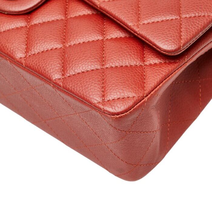 シャネル ココマーク マトラッセ25 ダブルフラップ チェーン ショルダーバッグ レッド キャビアスキン レディース CHANEL 【中古】